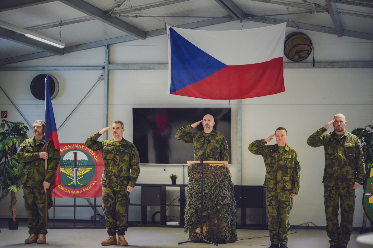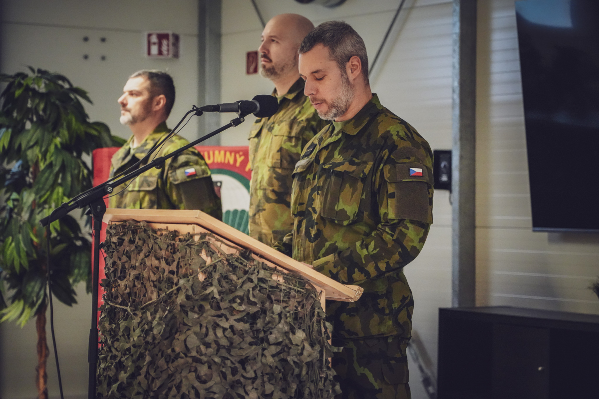 Kapitán Tomáš Kadlíček při nástupu jednotky zdůraznil připravenost českých vojáků k plnění úkolů v mezinárodním prostředí: